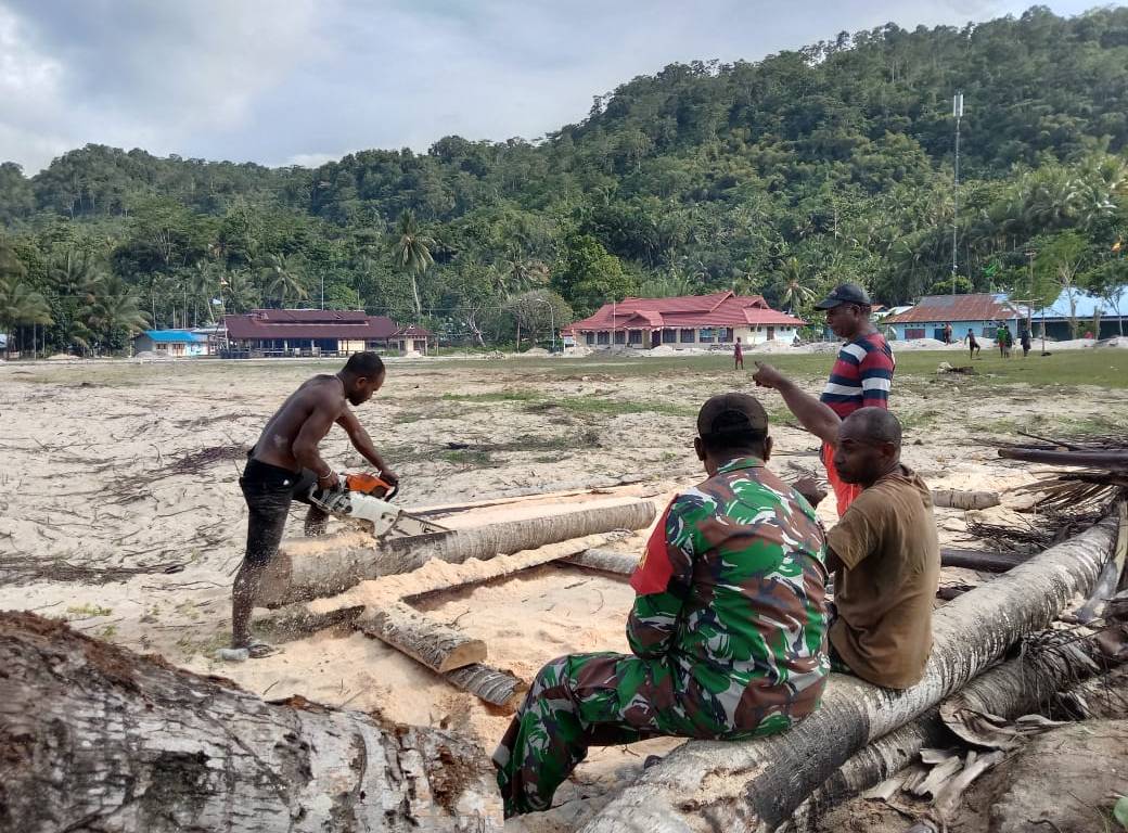 SENTANINEWS.ID – Warsa – Berusaha untuk aktif melakukan komunikasi sosial (Komsos) dengan warga binaannya, Babinsa Posramil 1708-02/BU-Warsa, Sertu Paulus Karuapi melaksanakan komsos bersama masyarakat yang kesehariannya berprofesi sebagai operator atau tukang sensor kayu, di Kampung Maniri, Distrik Warsa, Kabupaten Biak Numfor, Papua, Minggu 04 Desember 2022.