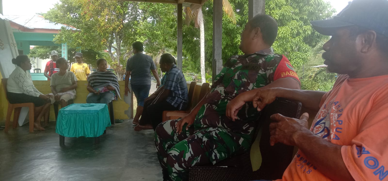 SENTANINEWS.ID – Biak – Babinsa Koramil 1708-01/Biak Kota Koptu M Azis melaksanakan komunikasi sosial (Komsos) dengan warga di kampung binaannya yaitu Kampung Manswam, Distrik Baik Kota, Kabupaten Baik Numfor, Papua, Selasa 06 Desember 2022.