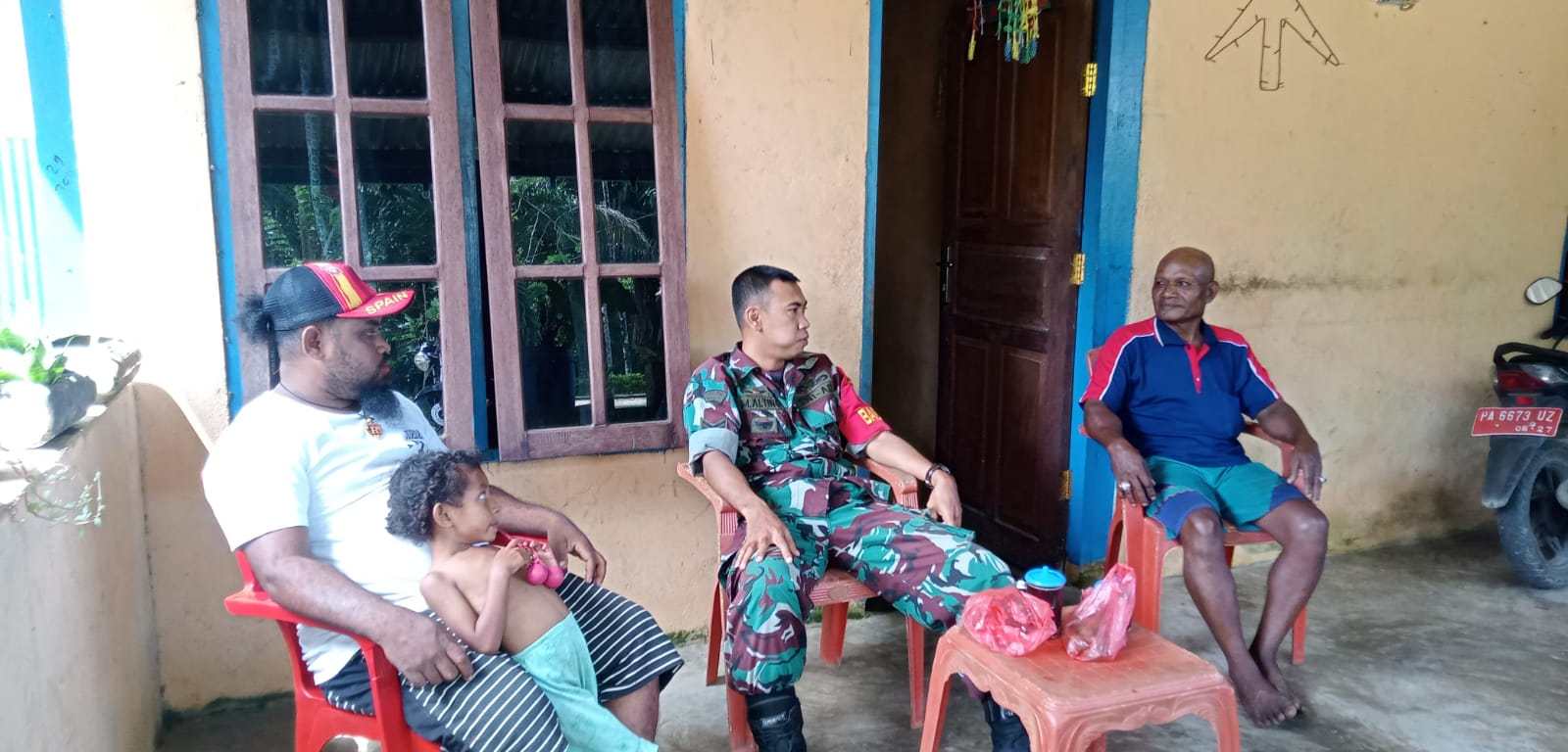 SENTANINEWS.ID – Supiori – Guna meningkatkan hubungan kerja yang baik di wilayah, Babinsa dari Koramil 1708-04/Supiori Selatan Serka Alting melaksanakan Komunikasi Sosial (komsos) bersama warga di Rumah Bapak Darius Pombos untuk menjalin tali silaturahmi di kampung binaan, yaitu Kampung Duber, Distrik Supiori Timur, Kabupaten Supiori, Papua, Selasa 13 Desember 2022.