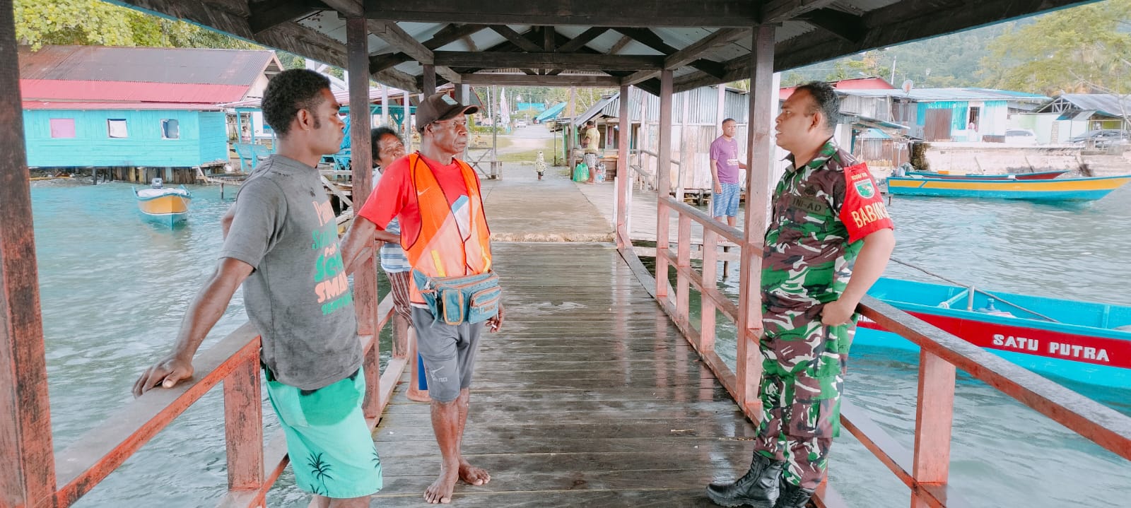 SENTANINEWS.ID – Supiori Selatan – Babinsa Koramil 1708-04/Supiori Selatan, Serka Nano Sawito melaksanakan Komunikasi Sosial (Komsos) sekaligus memantau aktivitas warga yang berada di Pelabuhan Korido di Kampung Fanindi, Distrik Supiori Selatan, Kabupaten Supiori, Papua, Jumat 16 Desember 2022.