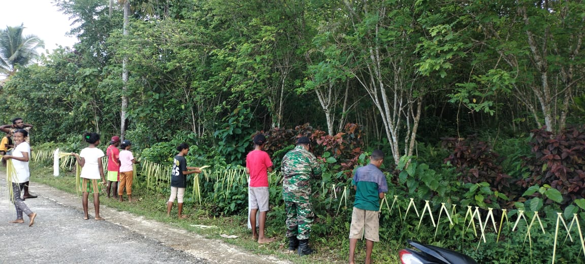 SENTANINEWS.ID – Numfor – Babinsa Koramil 1708-05/Numfor Serka Syamsudin D mengunjungi kampung binaannya sekaligus membantu menghiasi bahu jalan dalam rangka menyambut Natal di Kampung Pyefuri, Distrik Numfor Timur, Kabupaten Biak Numfor, Papua, Minggu 18 Desember 2022.