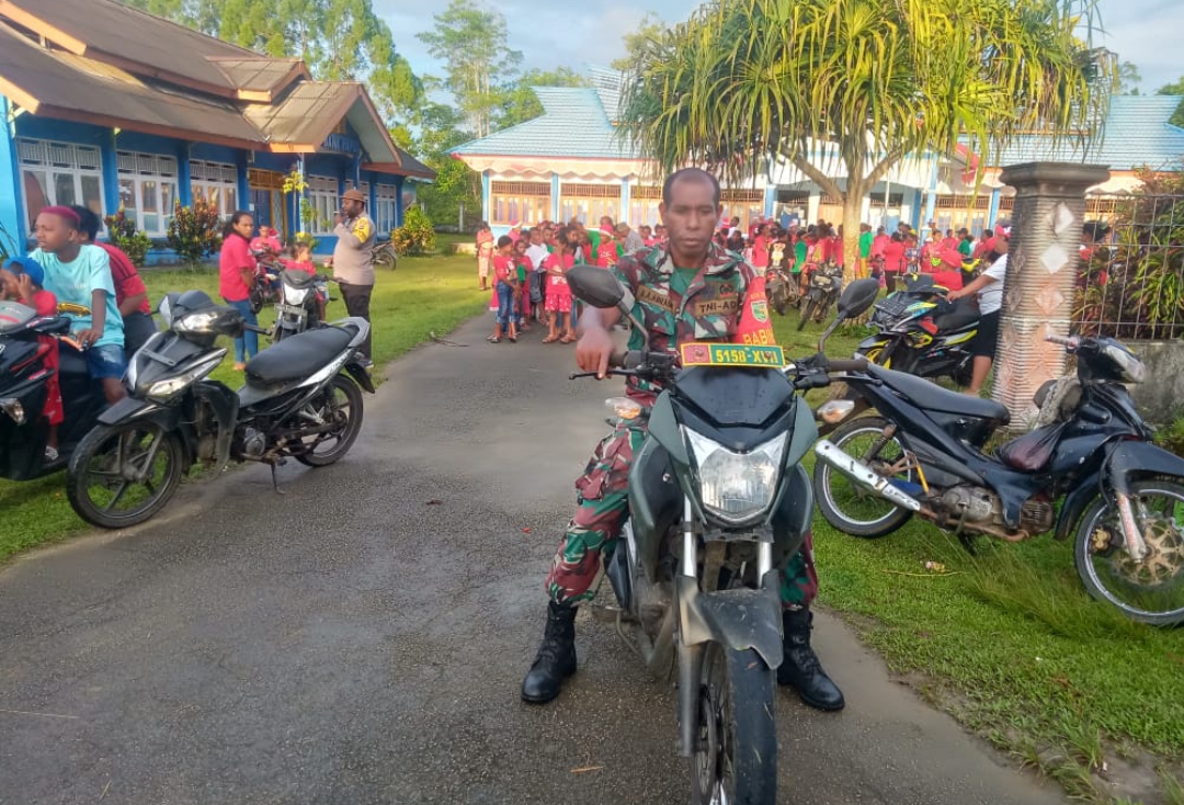 SENTANINEWS.ID – Biak Utara – Babinsa Koramil 1708-02/Biak Utara (BU) Sertu Abraham Abrauw menggelar pengamanan kegiatan Parade Santa Claus oleh GKI PNIEL Korem yang dipimpin Pdt Aldi Karniku yang diikuti oleh lima rayon bertempat di Kantor Distrik Biak Utara, Kabupaten Biak Numfor, Papua, Senin 19 Desember 2022.