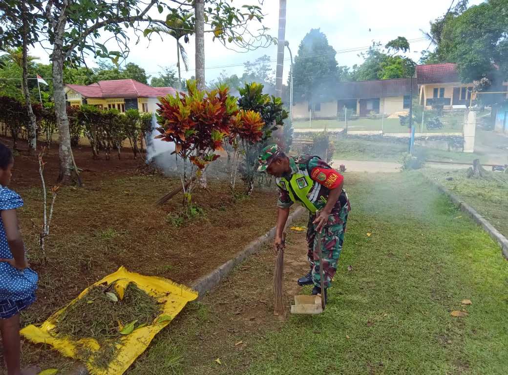 SENTANINEWS.ID – Biak Barat – Wujud Pembinaan Wilayah dan menumbuhkan jiwa gotong royong diwilayah binaan, Babinsa Koramil 1708-03/Biak Barat Serka James Bonsapia turut serta dalam pembersihan halaman rumah warga binaannya, di Kampung Yomdori, Distrik Biak Barat, Kabupaten Biak Numfor, Papua, Selasa 20 Desember 2022.