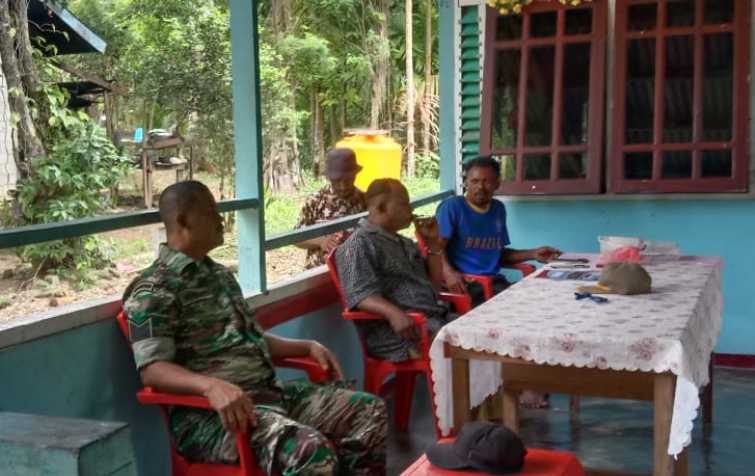 SENTANINEWS.ID – Numfor – Batuud Koramil 1708-05/Numfor Serka Yohni Hermanto melaksanakan pengamanan pembagian Bantuan Langsung Tunai Dana Desa (BLT DD), di Balai Kampung Rarsibo, Distrik Numfor timur, Kabupaten Biak Numfor, Papua, Rabu 21 Desember 2022.