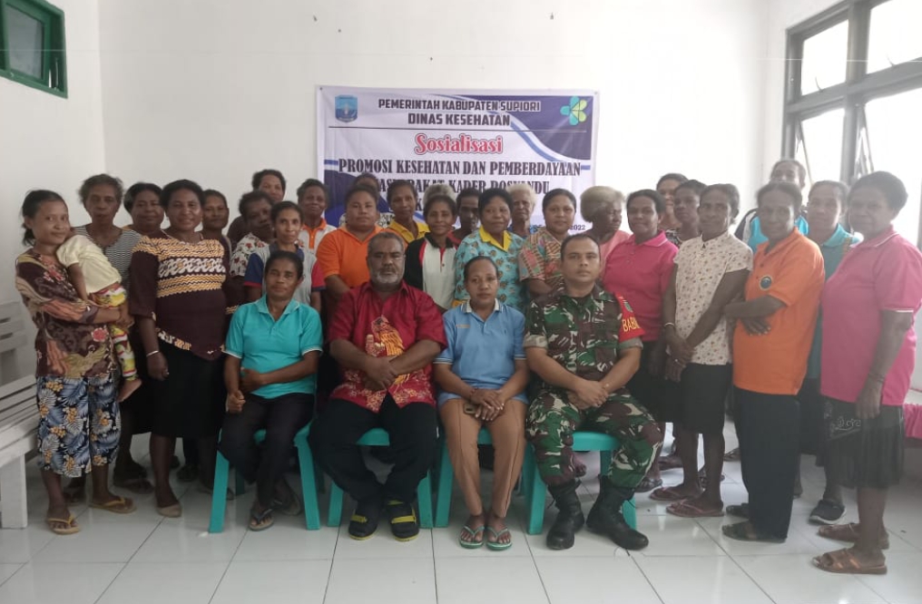 SENTANINEWS.ID – Supiori Selatan – Babinsa Koramil 1708-04/Suiori Selatan Serka Nano Sawito menghadiri kegiatan sosialisasi promosi kesehatan (Promkes) dan pembinaan kader Posyandu yang bertempat di Puskesmas Korido, Kampung Awaki, Distrik Supiori Selatan, Kabupaten Supiori, Papua, Minggu 25 Desember 2022.