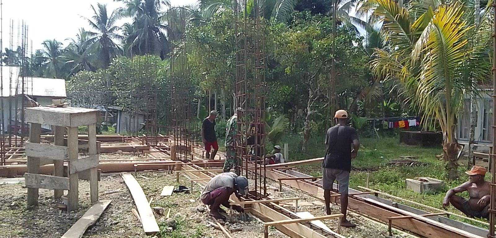 SENTANINEWS.ID – Numfor – Sebagai bentuk kepedulian dalam menunjang fasilitas ibadah, Babinsa Koramil 1708-05/Numfor Kopda Lukius Rumbruren terjun langsung dalam membantu proses pembangunan gedung gereja di Kampung Namber Distrik Numfor Barat, Kabupaten Biak Numfor, Papua, Senin 26 Desember 2022.