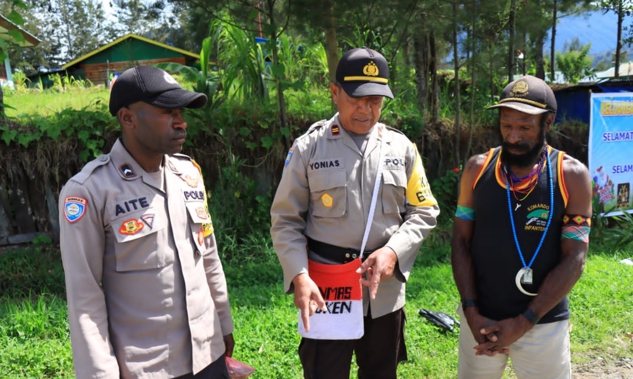 Iptu Yonias Purwanto bersama anggota Binmas Noken Polri mengajak Yonius Ganie menjaga Kamtibmas agar tetap kondusif menjelang Tahun Baru 2023 di wilayah itu.
