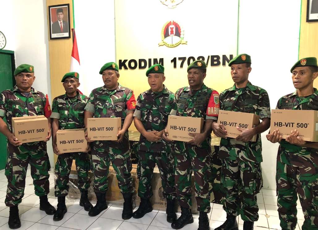 Bantuan Vitamin untuk Kodim 1708/BN mendapatkan sebanyak 3 dus dan masing-masing dus berisikan 8 kotak jadi totalnya ada 24 kotak, dan dibagikan ke masing-masing Babinsa koramil jajaran Kodim 1708/BN.