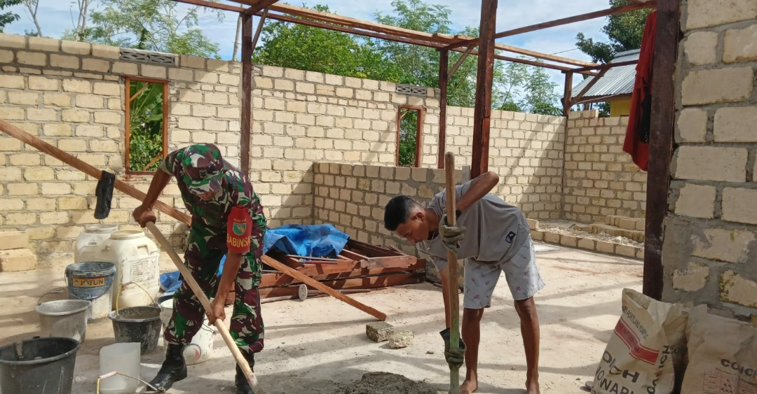 Kegiatan tersebut merupakan bentuk kepedulian Babinsa terhadap warga binaan yang sedang membangun rumah untuk tempat tinggal.