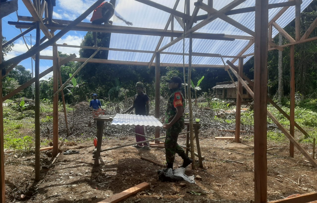 SENTANINEWS.ID – Supiori – Kegiatan teritorial yang menjadi tugas dan tanggung jawab seorang Babinsa di kampung, dituntut untuk selalu bersinergi dengan pemerintahan setempat maupun masyarakat. Seperti halnya, Babinsa Koramil 1708-04/Supiori Selatan, Serda Sudirman Wakimin bersama warga, melaksanakan karya bakti pembangunan rumah warga milik Bapak Yosepus Warfandu di Kampung Odori, Distrik Supiori Selatan, Kabupaten Supiori, Papua, Selasa 03 Januari 2023.