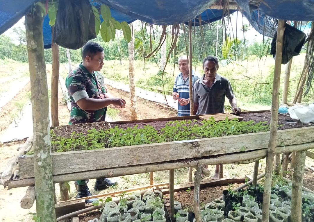 SENTANINEWS.ID – Biak Timur- Babinsa Posramil 1708-01/Biak Timur Sertu Wahyu Hendro Patrias Setiawan melaksanakan pendampingan kepada petani di wilayah binaan dalam kegiatan penyemaian bibit cabai di lahan milik Bapak Matias Usyor warga Kampung Rimba Jaya, Distrik Biak Timur, Kabupaten Biak Numfor, Papua, Sabtu 07 Januari 2023.