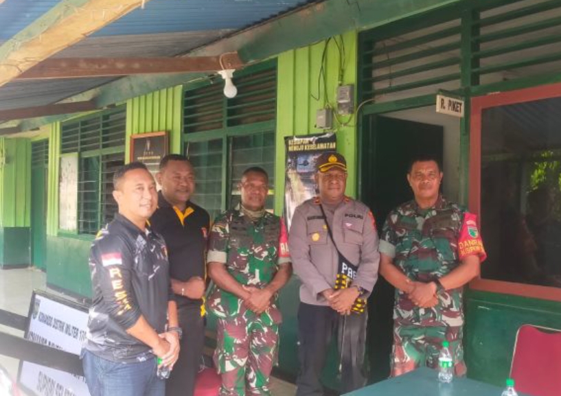 Kompol Marten W Asmaruf beserta rombongan di Makoramil 1708-04/Supiori Selatan, Kampung Fanindi, Distrik Supiori Selatan, Kabupaten Supiori, Papua, Senin 09 Januari 2023.