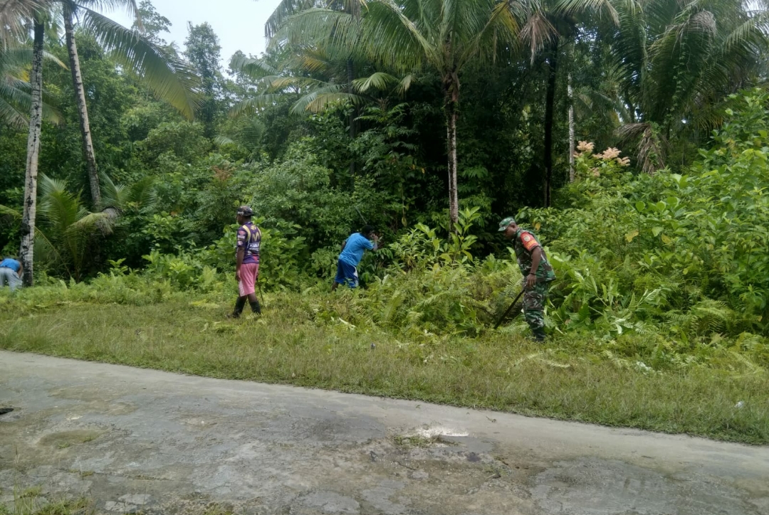 SENTANINEWS.ID – Numfor – Babinsa Koramil 1708-05/Numfor Koptu Maryones Syabes bersama masyarakat wilayah binaan membersihkan bahu jalan di sepanjang jalan Kampung Indaibo, Distrik Numfor Timur, Kabupaten Biak Numfor, Papua, Rabu 11 Januari 2023.