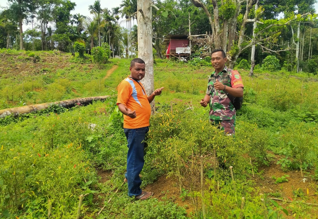 Dalam kesempatan tersebut Babinsa Serda Sukri Goma membantu petani dalam memetik cabai yang nantinya akan dijual ke pasar sambil berdiskusi dengan petani seputar kondisi pertanian di wilayah serta proses panen dan pemasarannya bahkan kemungkinan kendala yang ditemui para petani dalam menggarap lahan pertanian.