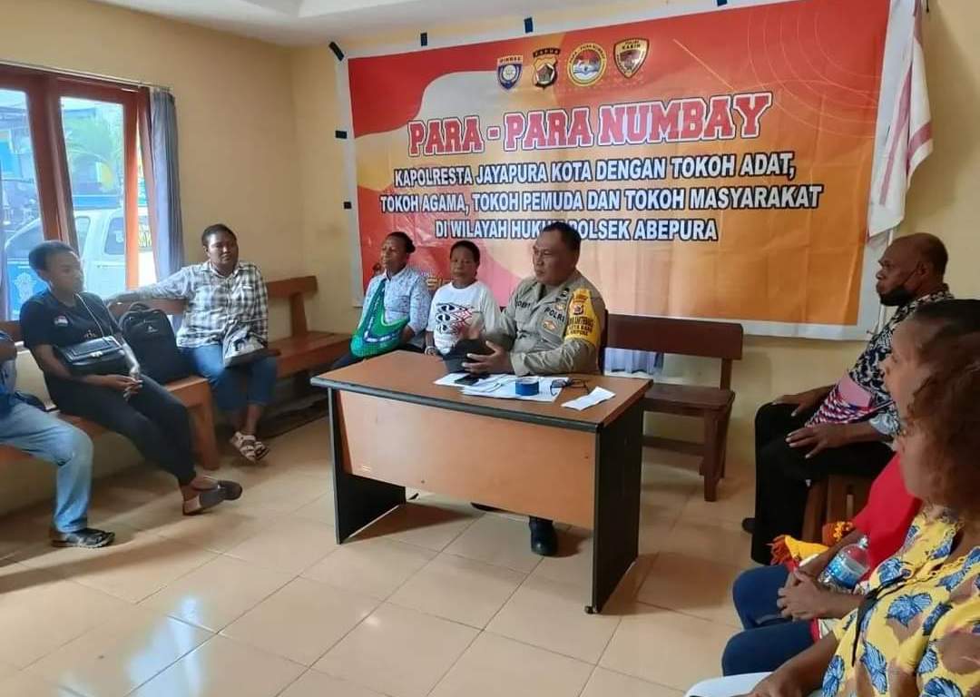 SENTANINEWS.ID – Jayapura Kota – Polsek Abepura gelar kegiatan Para-Para Numbay yang membahas tentang Kamtibmas serta memungkinkan masyarakat menyampaikan secara langsung terkait keluhannya kepada polisi maupun terkait situasi Kamtibmas yang ada di lingkungannya bertempat di Ruangan Unit Binmas Polsek Abepura, Kota Jayapura, Papua, Jumat siang, 20 Januari 2023.