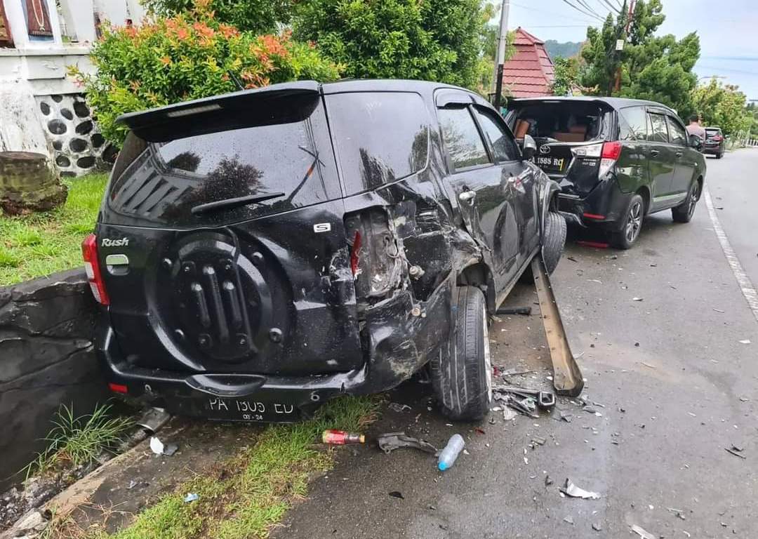 “AD tiba-tiba kaget karena sudah menbarak mobil Toyota Rush warna hitam yang terparkir di pinggir jalan, hingga mobil Rush menabrak dua mobil yang parkir di depannya yakni mobil Toyota Innova warna hitam dan monil Isuzu warna abu-abu,” ucap Kapolsek.