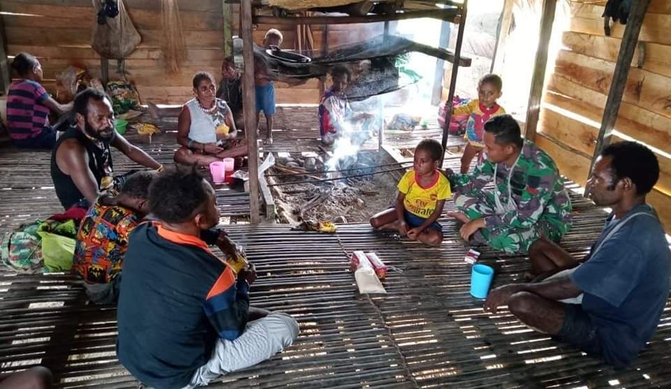Guna memaksimalkan tugas pengamanan dan menegakkan kedaulatan negara di perbatasan RI-PNG, Satgas Yonif 143/TWEJ juga melaksanakan pembinaan teritorial (Binter) dengan mengunjungi atau anjangsana dan berkomunikasi dengan masyarakat guna meningkatkan eratnya jalinan komunikasi dan kekeluargaan di Kampung Kawe, Distrik Awinbon, Kab. Pegunungan Bintang, Papua Pegunungan, Papua Pegunungan, pada Sabtu 08 April 2023.