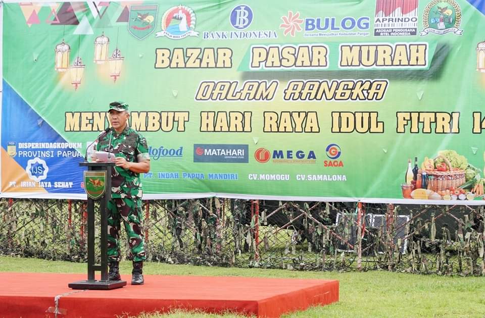 “Oleh karenanya, Kodam XVII/Cenderawasih bekerja sama dengan semua unsur Forkopimda, seluruh mitra, para pengusaha dan pemilik grosir serta seluruh elemen masyarakat menyelenggarakan Bazar Ramadhan secara serentak di wilayah Papua, dengan tujuan agar harga barang yang terdapat pada kegiatan Bazar lebih murah dari harga barang yang berlaku di pasar,” kata Brigjen TNI R. Sidharta Wisnu Graha, S.E.
