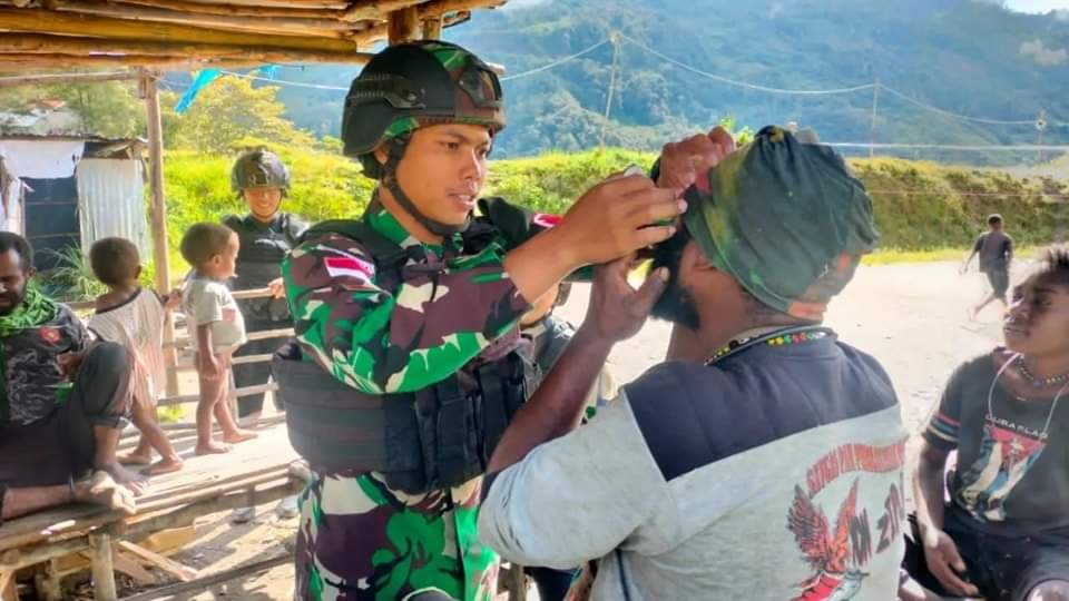SENTANINEWS.ID – Mulia – Prajurit TNI dari Posramil Yambi Satgas Yonif RK 115/Ml memberikan pelayanan kesehatan sebagai bentuk kepedulian terhadap masyarakat, bertempat di Kampung Yambi, Distrik Yambi, Kab. Puncak Jaya, Papua Tengah, pada Jum’at 28 April 2023.