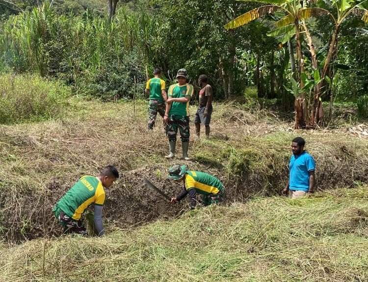 SENTANINEWS.ID – Wamena – Personil TNI dari Satgas Yonif Raider 321/GT/13/1 Kostrad terus berupaya memberikan yang terbaik kepada masyarakat melalui kegiatan gotong-royong membuka lahan perkebunan yang dilakukan bersama warga, di Yapema, Distrik Asolokobal dan Kampung Tulen Distrik Wita Waya, Kabupaten Jayawijaya, Papua Pegunungan, Senin 08 Mei 2023.