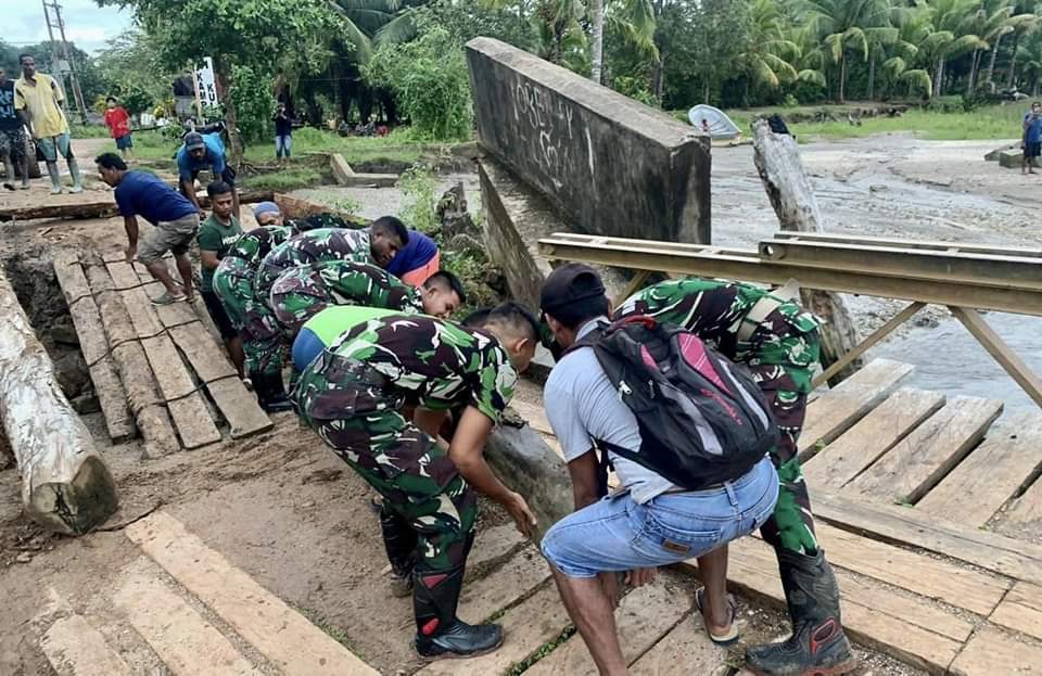 Sementara itu, Sertu Bayu Purnomo Aji mengatakan bahwa sebagai wujud perhatian untuk membantu kelancaran mobilitas warga, Satgas bersama masyarakat gotong-royong memperbaiki jembatan yang menjadi sarana utama penghubung menuju ke kota.