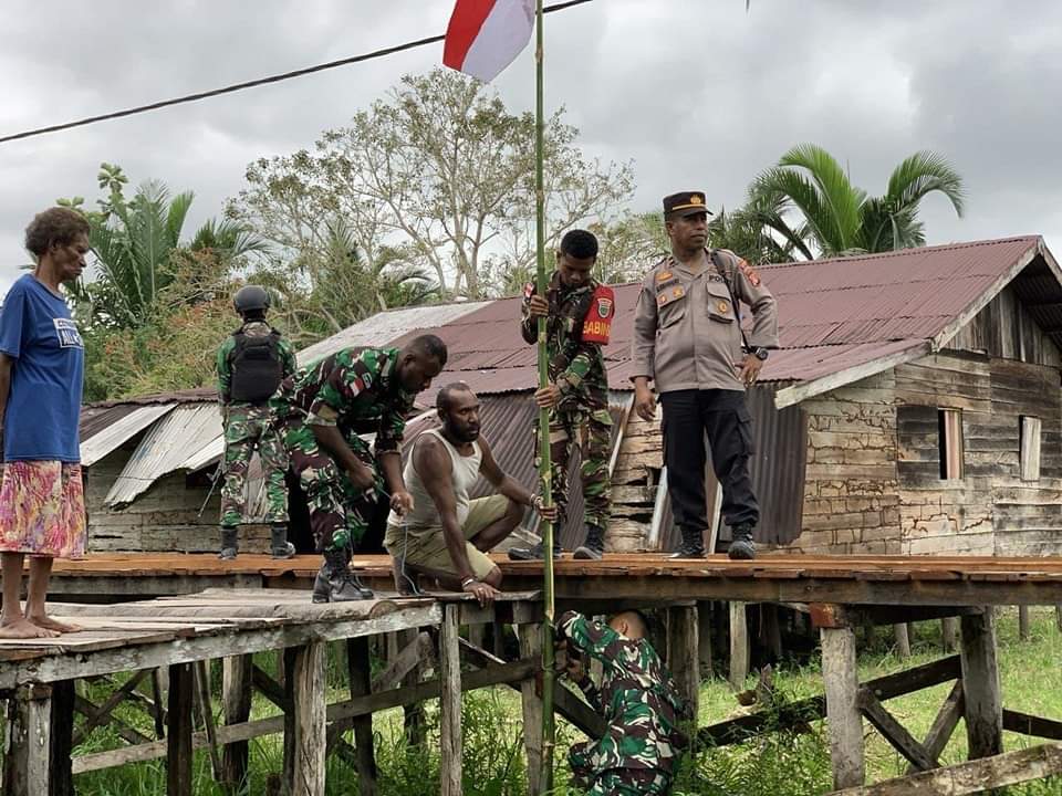 Pada saat melaksanakan kegiatan di seputaran Kampung Senggo masyarakat terlihat sangat antusias dan senang hati untuk mengibarkan bendera merah putih di depan rumah masing-masing.(Pendam XVII/Cenderawasih)