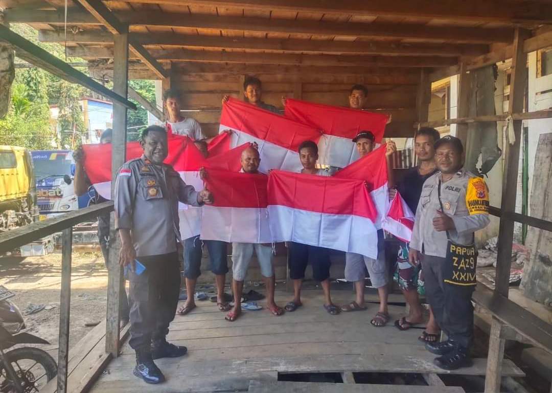 SENTANINEWS.ID – Merauke – Jayapura Kota – Melalui Program Para-Para Numbay, Kapolsek Jayapura Utara AKP Jan Viktor Makanuay bersama Bhabinkamtibmas ajak warganya untuk memasang bendera merah putih dalam rangka menyongsong HUT RI Ke-78 bertempat di Galangan Dok 4 Kelurahan Mandala, Distrik Jayapura Selatan, Kota Jayapura.