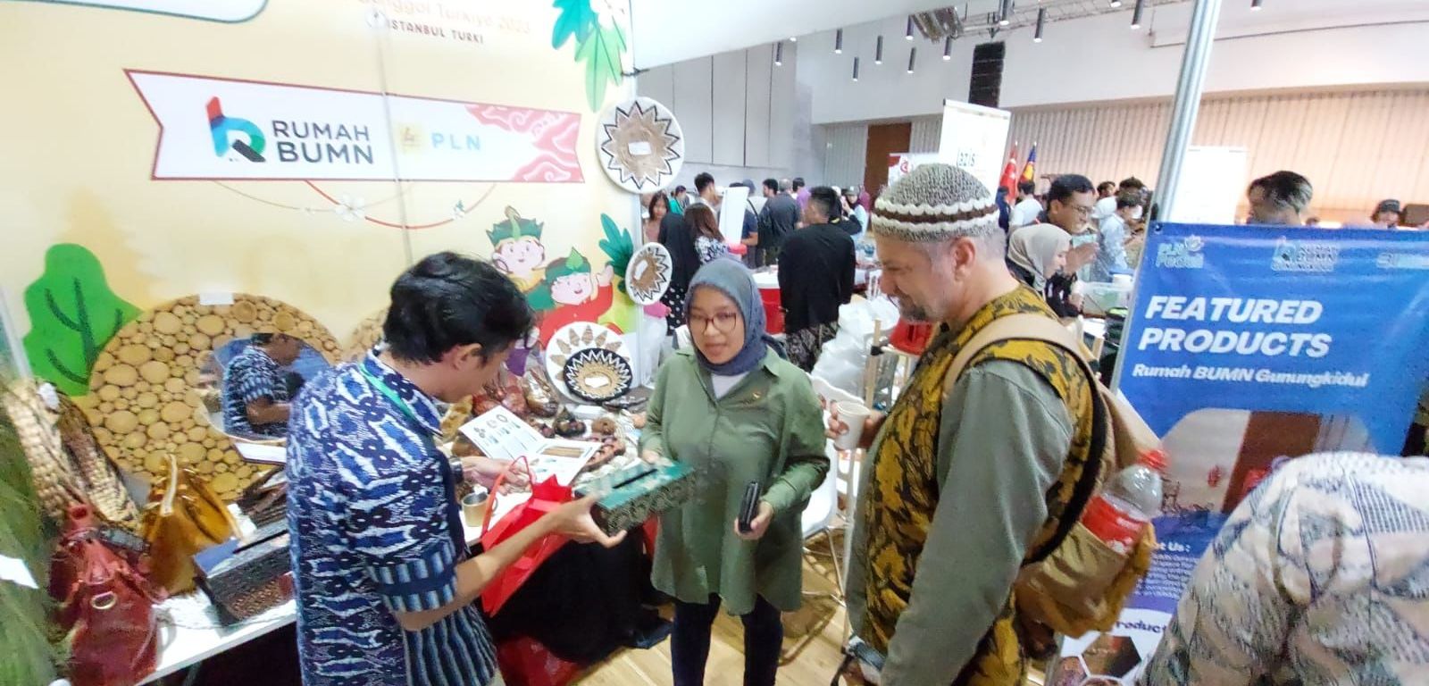 Adapun pagelaran kali ini, Diaspora menggandeng Pelajar Persatuan Indonesia (PPI), Pekerja Migran Indonesia (PMI), dan didukung oleh KJRI Istanbul. Lewat dukungan Rumah BUMN, pemerintah akan terus mendukung UMK untuk bisa naik kelas bahkan go global. (HUMAS PLN)