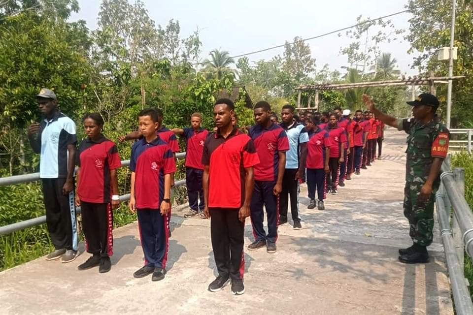 SENTANINEWS.ID – Asmat – Dalam rangka memperingati hari Sumpah Pemuda, Babinsa Koramil 1707-19/Atsj yang dipimpin oleh Danramil Kapten Inf Suriyan memberikan pelatihan baris berbaris (PBB) kepada siswa-siswi SMA Negeri 1 Atsj.