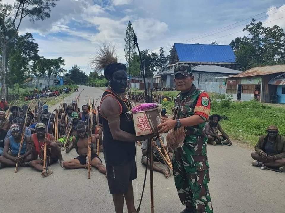Pasca bentrok suku Walak dan suku Lanny pada Senin (1/1) lalu, TNI lewat Dandim 1702/Jayawijaya Letkol Cpn Athenius Murip, S.H., M.H., memberikan bantuan sosial kepada korban berupa 400 karung beras dan 20 karton mie instan.