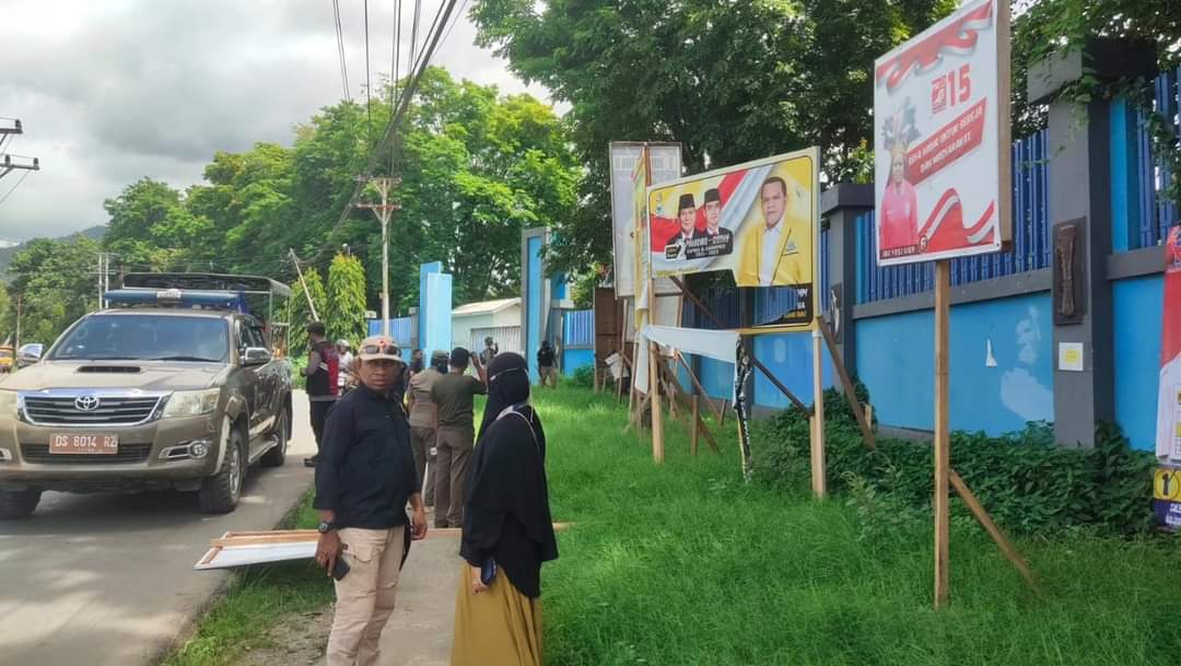 “Berbagai tindakan dilakukan, seperti menurunkan baliho, bendera partai, dan alat peraga kampanye dari tempat-tempat yang tidak diizinkan, mulai dari trotoar jalan hingga pohon dekat terminal batas kota Jayapura”terang Kompol Agus.