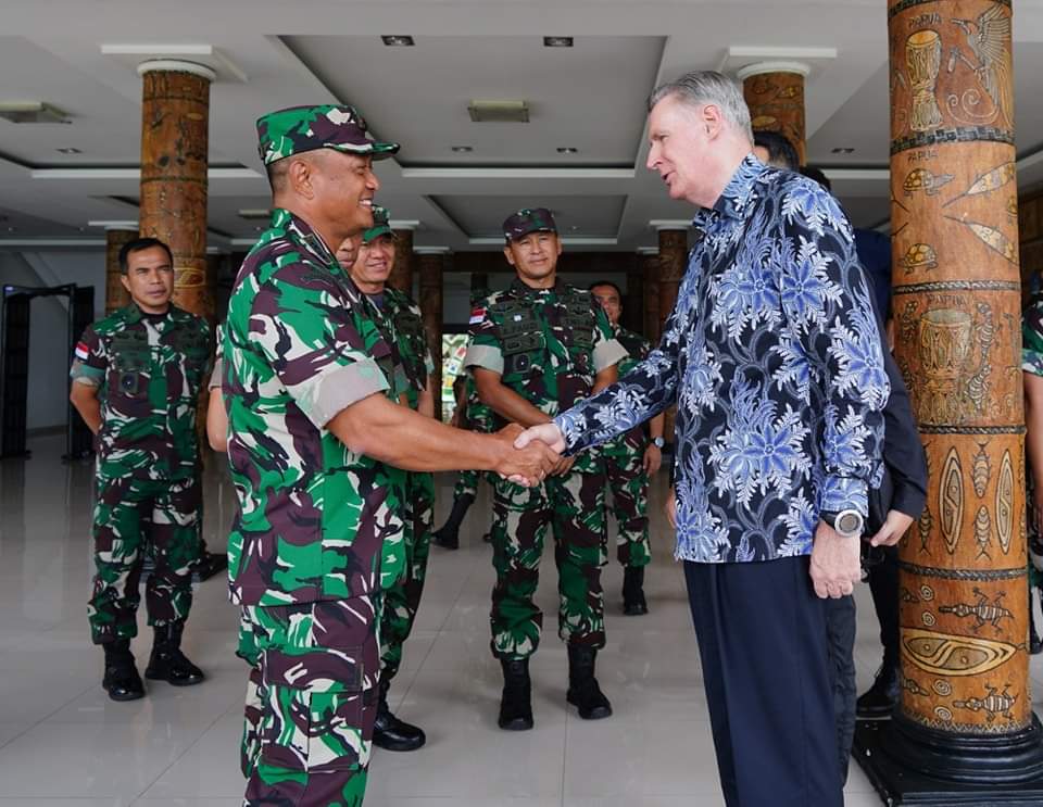 SENTANINEWS.ID – Jayapura Kota – Pangdam XVII/Cenderawasih Mayjen TNI Izak Pangemanan, M.Han didampingi Para Pejabat Utama menerima kunjungan Duta Besar (Dubes) Selandia Baru untuk Indonesia Mr. Kevin Jeffery Burnett, H.E., di Makodam XVII/Cenderawasih, Kota Jayapura, Rabu 7 Februari 2024.