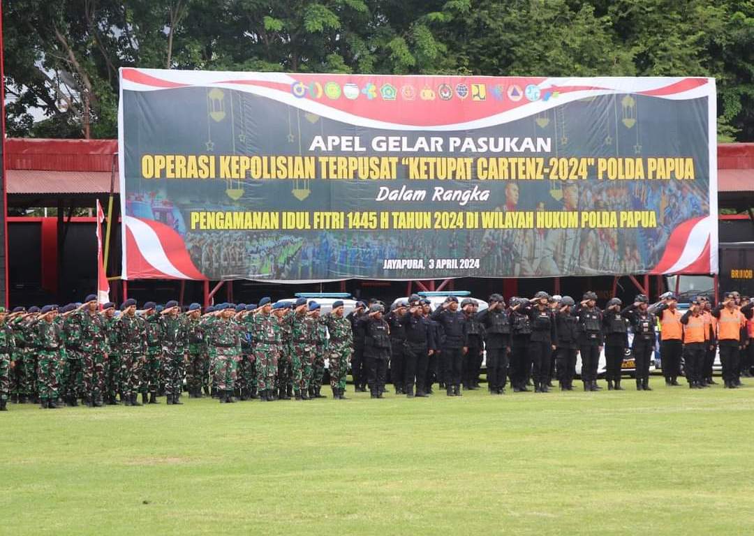 Dalam amanat Kapolri yang dibacakan Wakapolda Papua Brigjen Pol Petrus Patrige Rudolf Renwarin, S.H., M.Si., mengucapkan puji syukur ke hadirat Tuhan Yang Maha Kuasa, karena atas limpahan rahmat dan karunia-Nya, hari ini kita masih diberikan kesehatan, dan kekuatan untukmelaksanakan “Apel Gelar Pasukan Operasi Ketupat