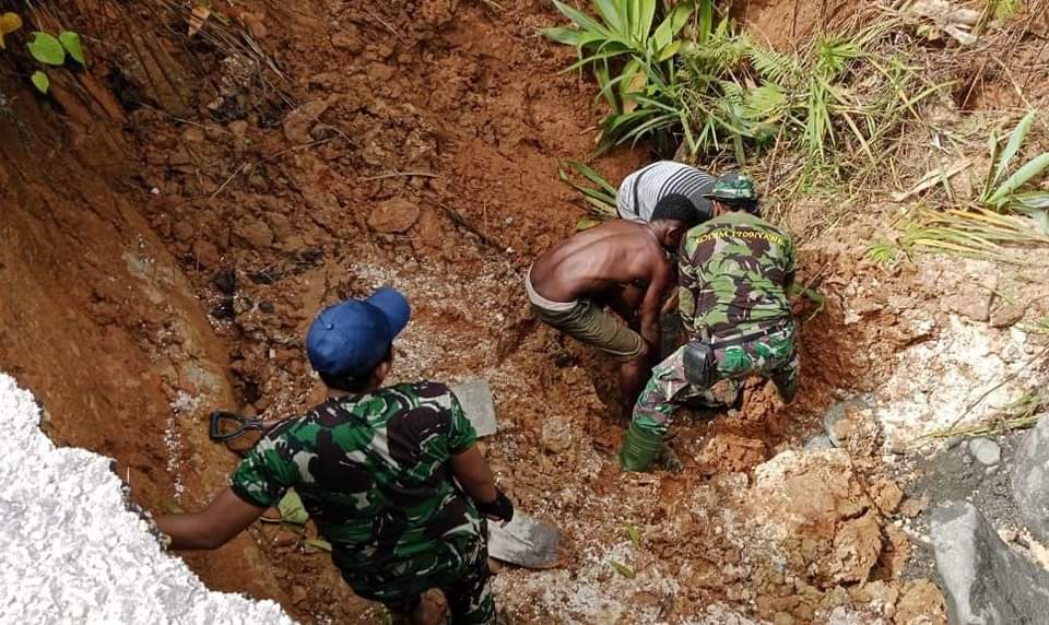 Mendapati kejadian tanah longsor yang mengakibatkan putusnya jalur transportasi masyarakat satu-satunya di wilayah tersebut, maka para prajurit TNI dari Babinsa Koramil 1709-02/Dawai yang dipimpin oleh Danramil Kapten Inf Masngudi, dengan sigap turun langsung kelokasi untuk melakukan perbaikan dan penimbunan jalan, pada Kamis 23 Mei 2024.