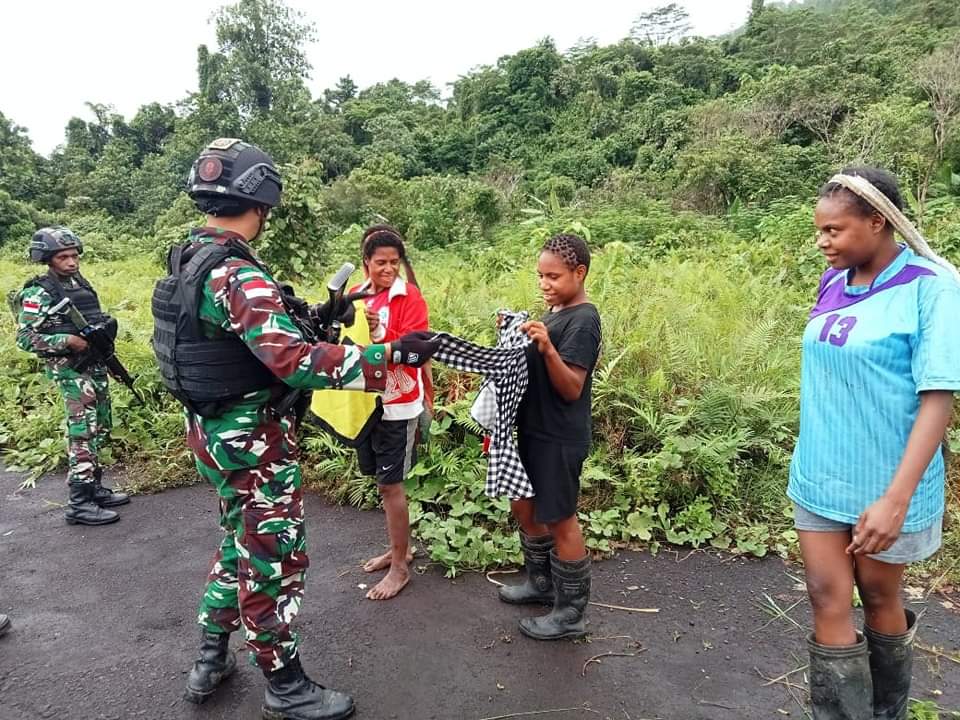 “Terima kasih Bapak-bapak TNI, pakaian yang dibagikan bagus sekali, saya yakin warga pasti sangat senang menerimanya. Semoga bapak selalu diberkati Tuhan dalam melaksanakan tugas,” tutur David.(Pendam XVII/Cenderawasih)