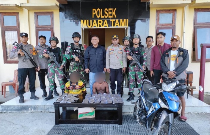 SENTANINEWS.ID – Jayapura Kota – Sinergitas solid dan kompak yang tanpa batas antara petugas Polri dan TNI di perbatasan Negara tepatnya di Kampung Mosso Distrik Muara Tami berhasil mengamankan narkotika jenis ganja bersama pemiliknya sekaligus dua pelaku yakni CF (18) dan IWF (23).