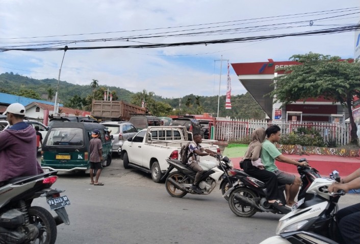 Antrian BBM jenis solar oleh truk dan kendaraan lainnya yang memanjang dan membuat kemacetan, seperti di SPBU Nagoya depan terminal lama Kota Jayapura. SPBU di APO yang antrian hingga mendekati lampu merah Dok II Jayapura. Lalu SPBU di Entrop samping terminal yang juga terlihat terjadi antrian.