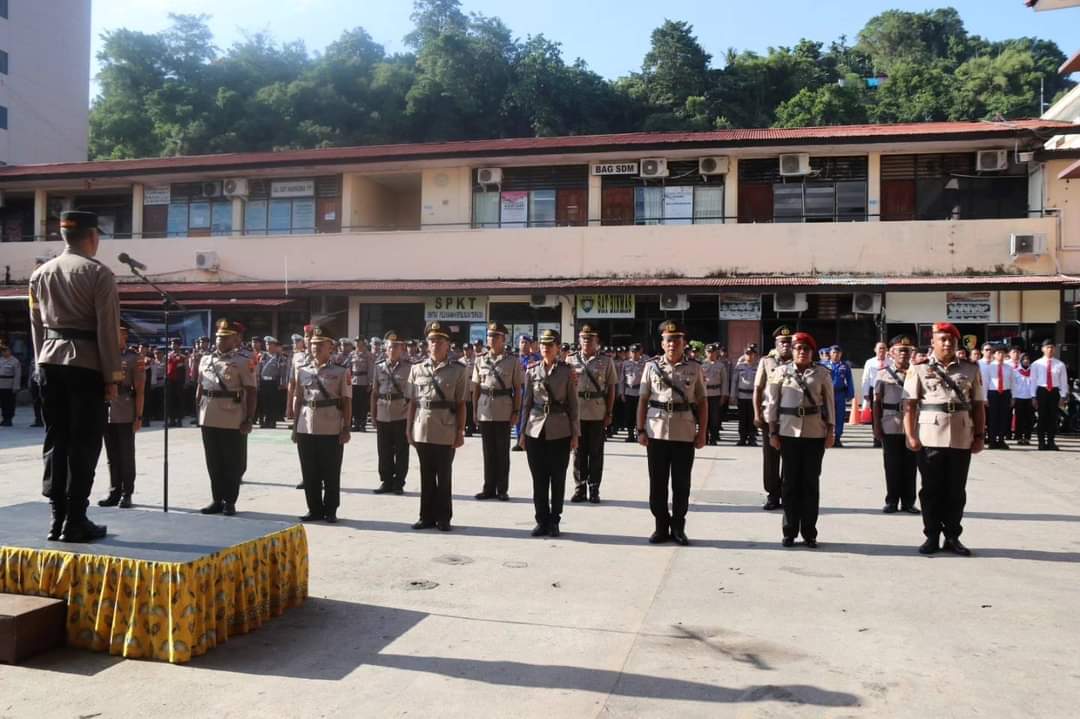 Wakapolresta Jayapura Kota AKBP Deni Herdiana, S.E., S.H., M.M., M.H mewakili Kapolresta Jayapura Kota memimpin langsung upacara sertijab.