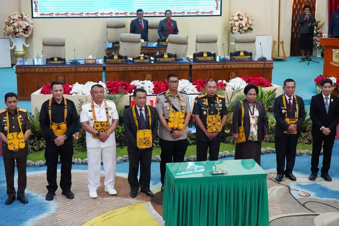 SENTANINEWS.ID – Jayapura Kota – Harapan bersama, percepatan dan memerataan pembangunan kesejahteraan semakin dapat dirasakan masyarakat di wilayah Papua. Sebagai bentuk dukungan pembangunan tersebut, Pangdam XVII/Cenderawasih Mayjen TNI Rudi Puruwito, S.E.,M.M didampingi Ketua Persit Kartika Chandra Kirana Daerah XVII/Cenderawasih Ny. Agustin Rudi Puruwito menghadiri kegiatan Penutupan Rapat Paripurna Dewan Perwakilan Rakyat Papua, bertempat di Kantor DPR Papua, Jl. Sam Ratulangi, Distrik Jayapura Utara, Kota Jayapura, Papua, Kamis malam, 26 September 2024.