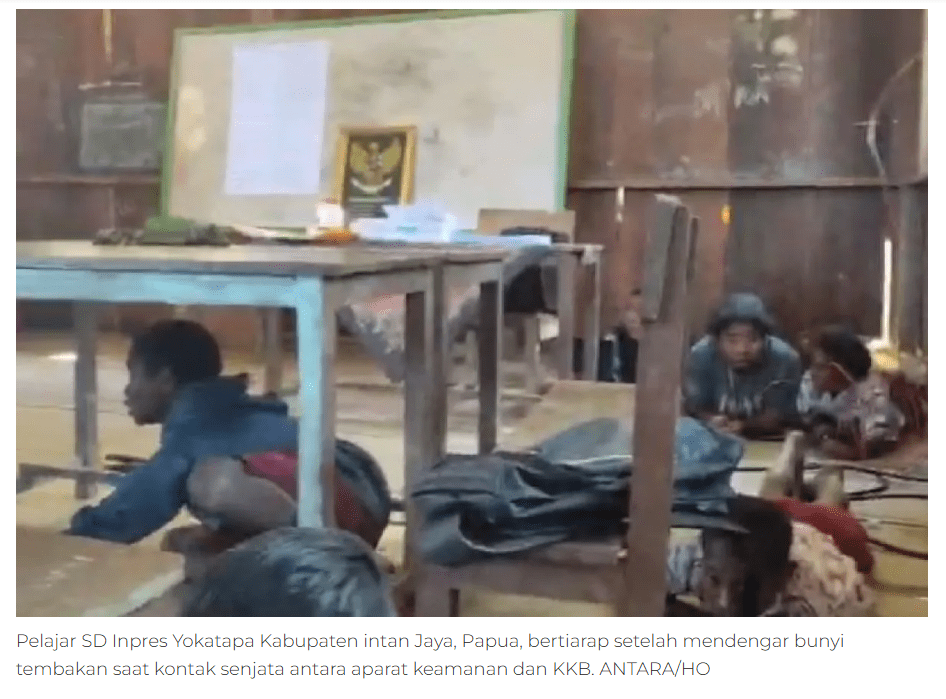 “Memang ada video yang beredar terkait dengan pelajar SD Inpres Yokatapa yang bertiarap di atas lantai papan di kelas mereka karena terdengar bunyi tembakan,” katanya.