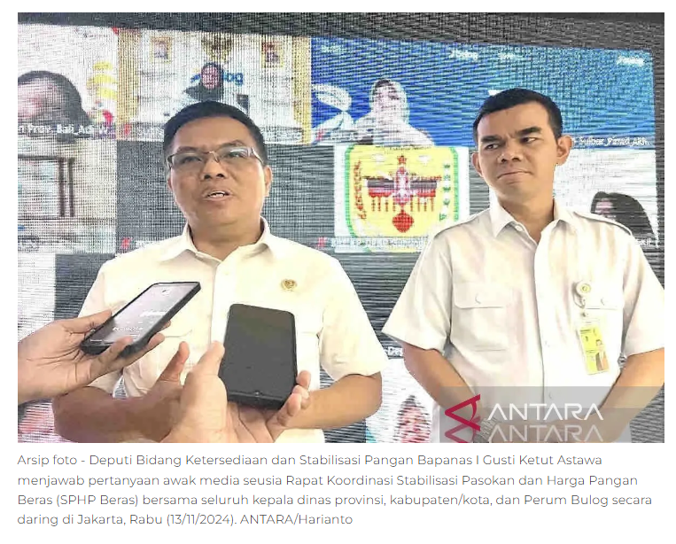 Deputi Bidang Ketersediaan dan Stabilisasi Pangan Bapanas I Gusti Ketut Astawa mengatakan, pihaknya menerima laporan dari dinas setempat bahwa harga beras Stabilitas Pasokan dan Harga Pangan (SPHP) di daerah itu melebihi harga eceran tertinggi (HET) pemerintah.
