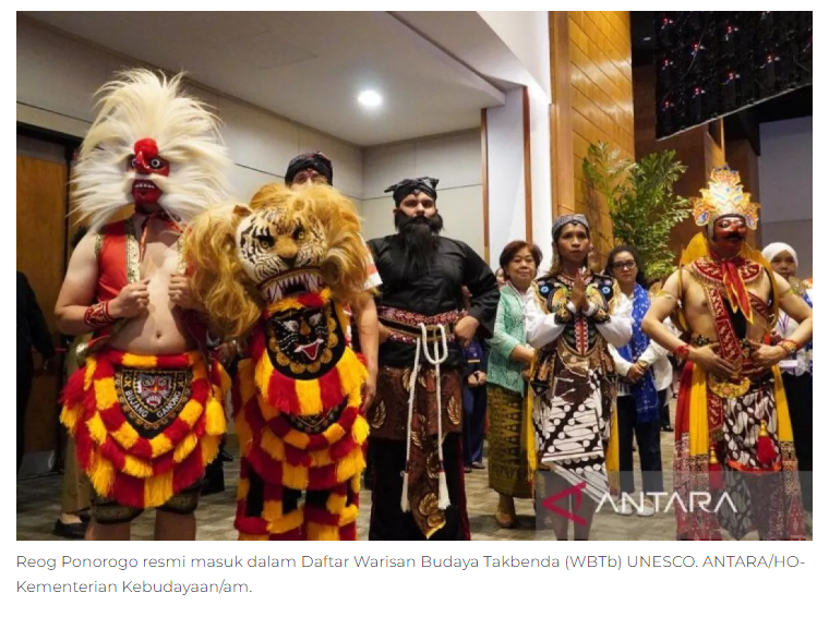 SENTANINEWS.ID – JAKARTA – Reog Ponorogo resmi masuk dalam Daftar Warisan Budaya Takbenda/WBTb UNESCO, dalam kategori “In Need of Urgent Safeguarding”, yang berlangsung pada Sidang Intergovernmental Committee for the Safeguarding of the Intangible Cultural Heritage Sesi ke-19 di Asunción, Paraguay, pada tanggal 3 Desember 2024.