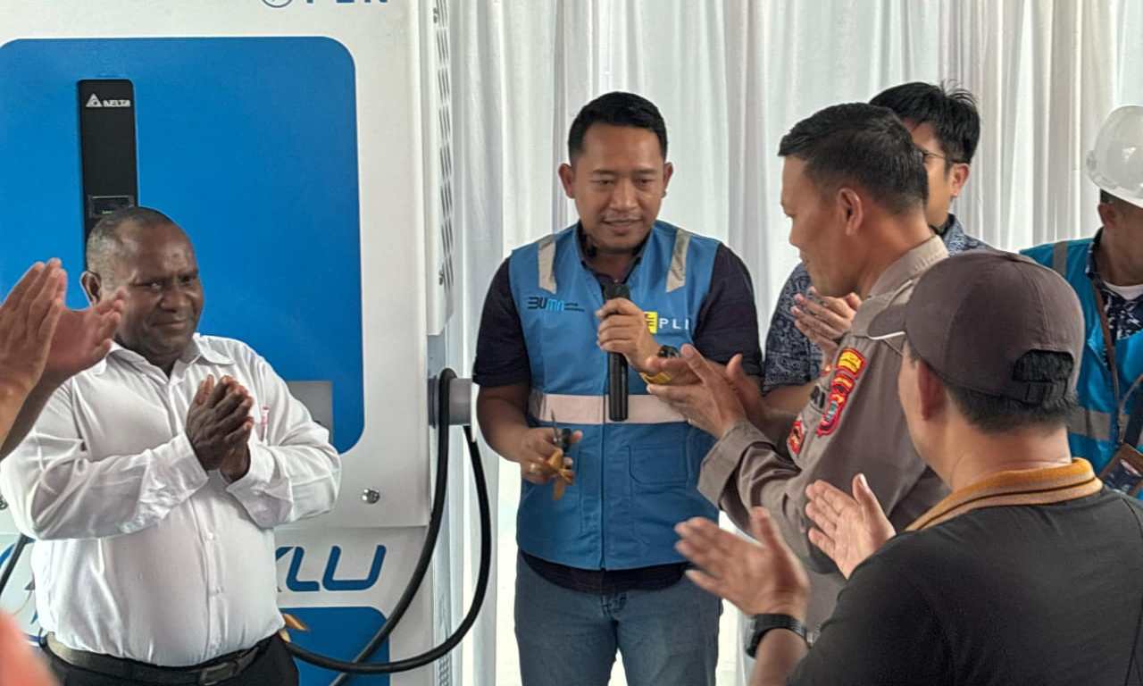 General Manager PLN UIW Papua dan Papua Barat, Rizky Mochamad, menyampaikan bahwa peresmian SPKLU ini merupakan langkah penting dalam mendukung ekosistem kendaraan listrik berbasis baterai (KLBB) dan memberikan alternatif bahan bakar selain BBM.