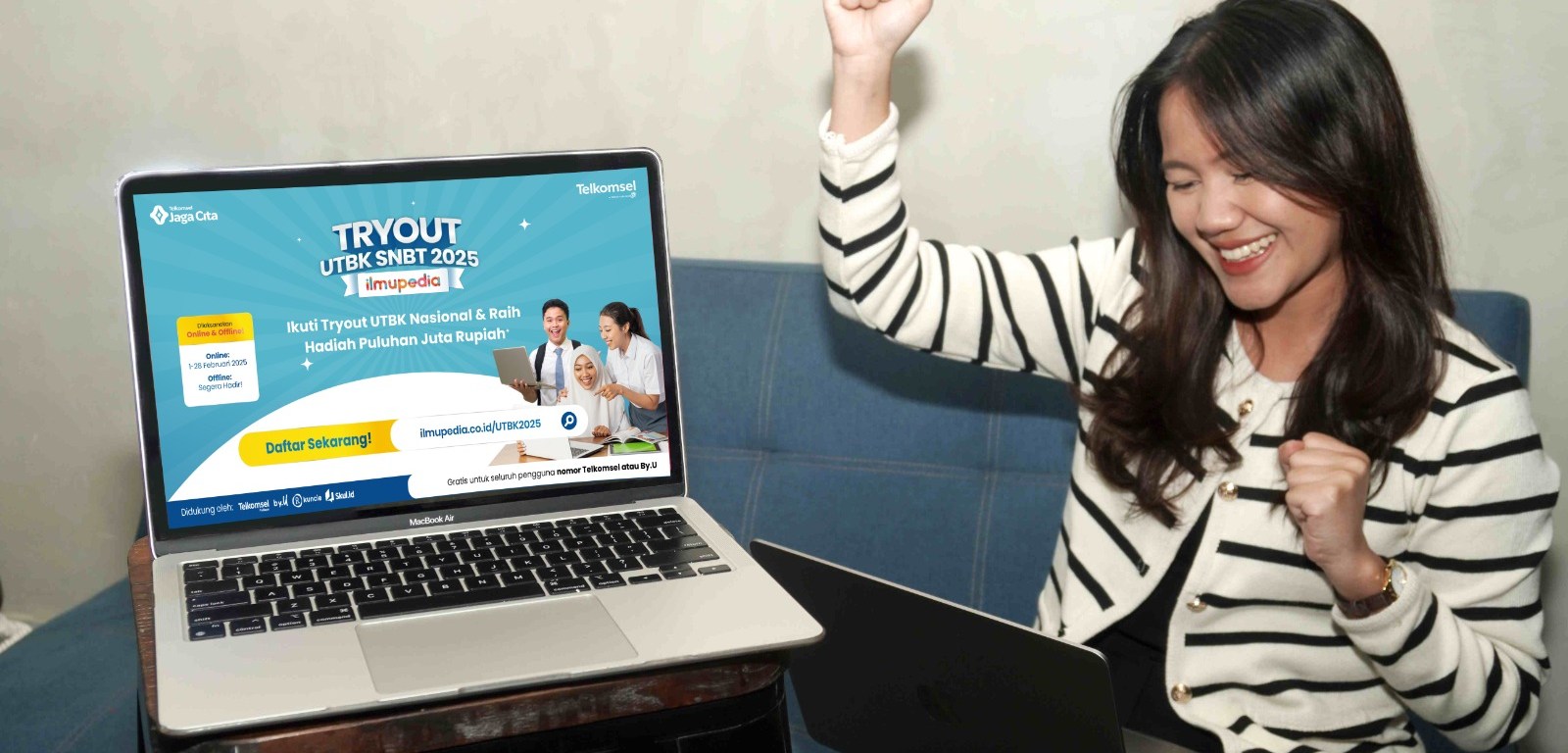 Para siswa/i SMA dan sederajat sudah bisa melakukan pendaftaran melalui situs ilmupedia.co.id/utbk2025 mulai dari 1 sd. 28 Februari 2025. Pendaftaran bisa dilakukan dengan menggunakan nomer Telkomsel. Setelah pendaftaran, para siswa/i bisa langsung mengikuti Ilmupedia Tryout UTBK SNBT 2025 secara online. Selain itu, Ilmupedia Tryout UTBK SNBT 2025 juga akan dilaksanakan secara offline di beberapa SMA/SMK di Kota Ambon, Sorong, Jayapura dan Timika. Beberapa SMA/SMK tersebut diantaranya; SMAN 1 Mimika, SMAN 2 Kota Sorong, SMAN 1 Biak, SMAN 4 Kota Jayapura, SMAN 3 Merauke dan SMAN 5 ambon.