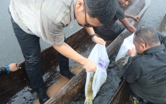 ’’restocking ini dilaksanakan dalam rangka menjaga keberlangsungan ikan arwana irian dialam serta komitmen pelaku usaha arwana irian yang telah melakukan pemanfataan arwana irian dari alam berdasarkan kuota tangkap’’, ungkap Tohirin.