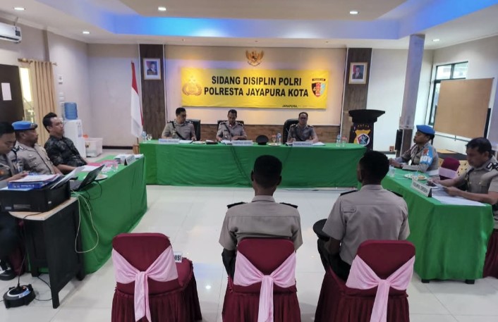 SENTANINEWS.ID – Jayapura Kota – Tegakkan Tata Tertib dan Disiplin di lingkungan Polresta Jayapura Kota, hari ini empat personel jalani Sidang Disiplin atas pelanggarannya masing-masing bertempat di Aula Mapolresta, Kota Jayapura, Papua, Jumat siang, 13 Juni 2025.