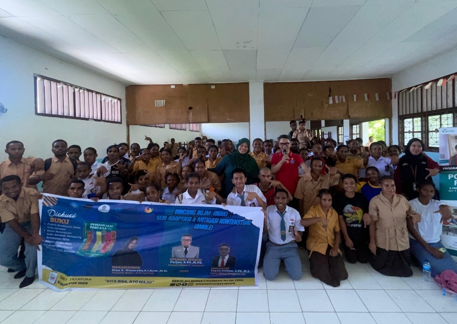 SENTANINEWS.NET – Jayapura Kota – Dalam rangkaian kegiatan “Bincang Iklim (Biak): Seri Adaptasi dan Mitigasi (Amole)”, SMAN 7 Jayapura bersama sejumlah mitra menggelar bedah buku Perempuan Perkasa karya Rhidian Yasminta Wasaraka, yang menghadirkan diskusi mendalam mengenai ketahanan iklim berbasis kearifan lokal Papua.