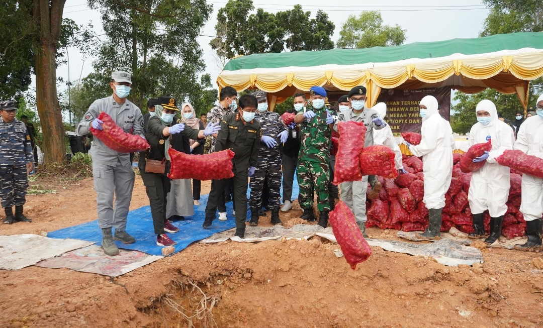 SENTANINEWS.NET – Batam – Badan Karantina Indonesia (Barantin) melalui Balai Karantina Hewan Ikan dan Tumbuhan Kepulauan Riau (Karantina Kepri) memusnahkan 4 ton bawang merah yang ditangkap oleh Badan Keamanan Laut (Bakamla) pada 2 Agustus lalu di Perairan Barat Pulau Galang, Provinsi Kepulauan Riau saat melakukan Operasi Patroli Bersama Yudhistira-II/25.