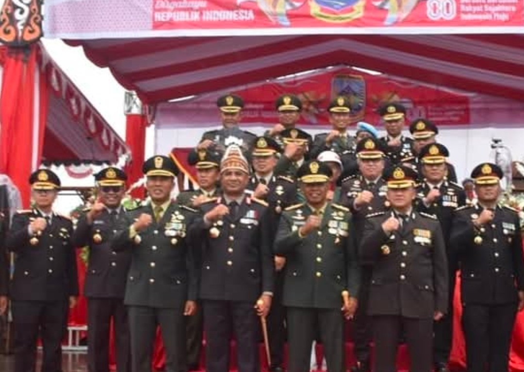 Danrem 173/PVB Brigjen TNI Frits W.R. Pelamonia tampak hadir bersama Kapolda Papua Tengah, Gubernur Papua Tengah, Ketua DPR Papua Tengah, serta para tokoh masyarakat, agama, pemuda, dan pelajar. Kehadiran para pemimpin daerah ini mencerminkan soliditas dan kebersamaan dalam memperkokoh semangat persatuan serta menjaga nilai-nilai luhur perjuangan bangsa.