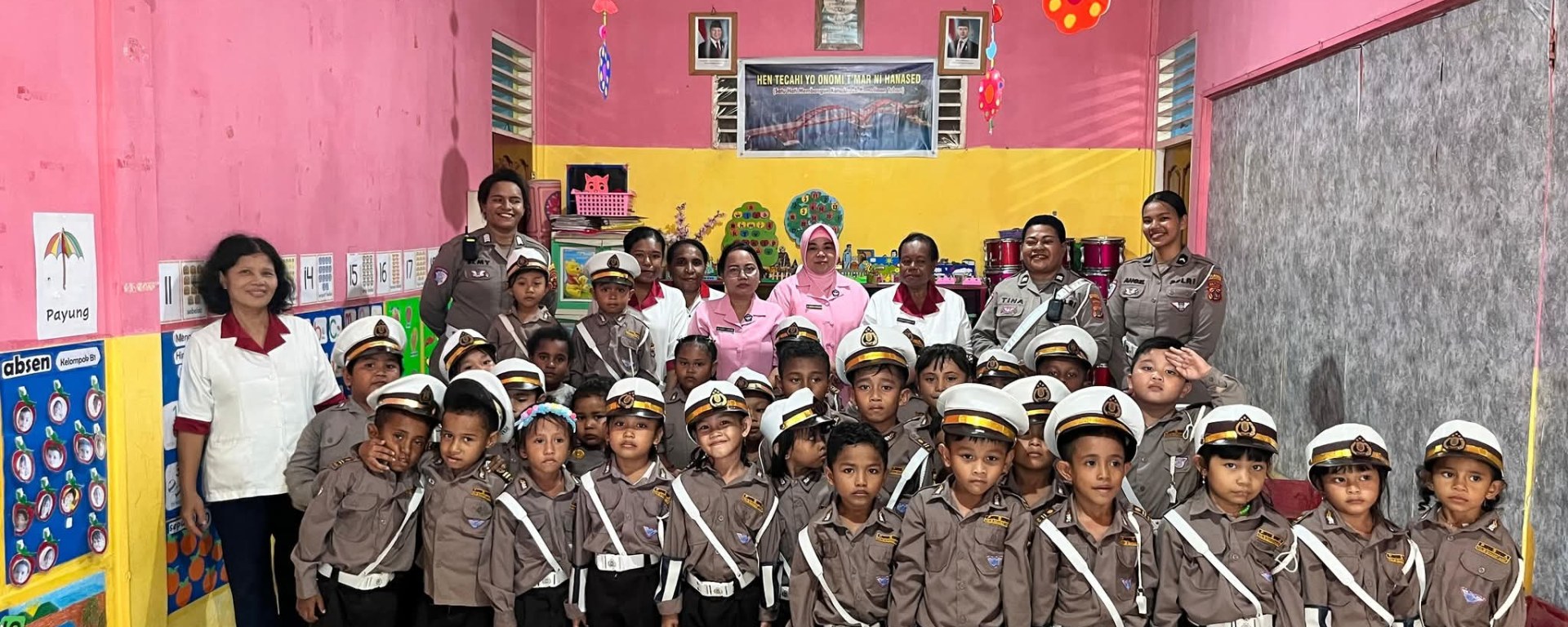 SENTANINEWS.NET – Jayapura Kota – Dalam upaya menanamkan kesadaran tertib berlalu lintas sejak dini, Satuan Lalu Lintas (Sat Lantas) Polresta Jayapura Kota bersama Pengurus Yayasan Kemala Bhayangkari Cabang Jayapura Kota melaksanakan program “Police Goes to School” di dua sekolah, yakni TK Kemala Bhayangkari Base-G dan TK Kemala Bhayangkari Hamadi, Kota Jayapura, Papua, Rabu 27 Agustus 2025.